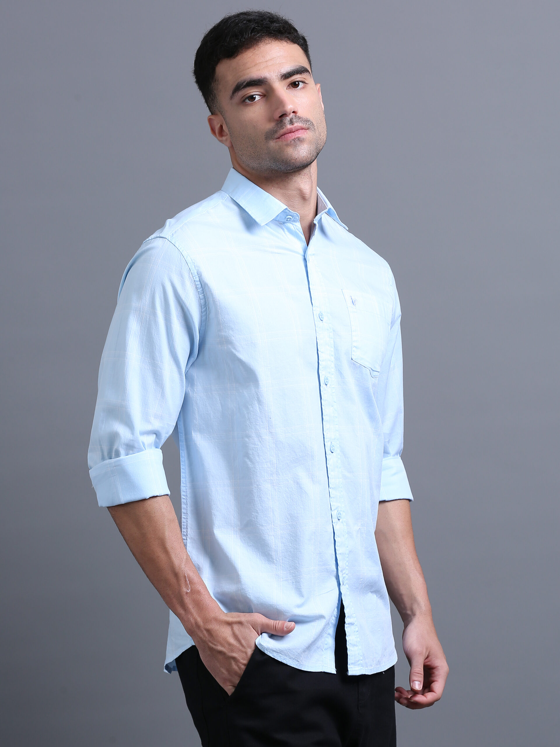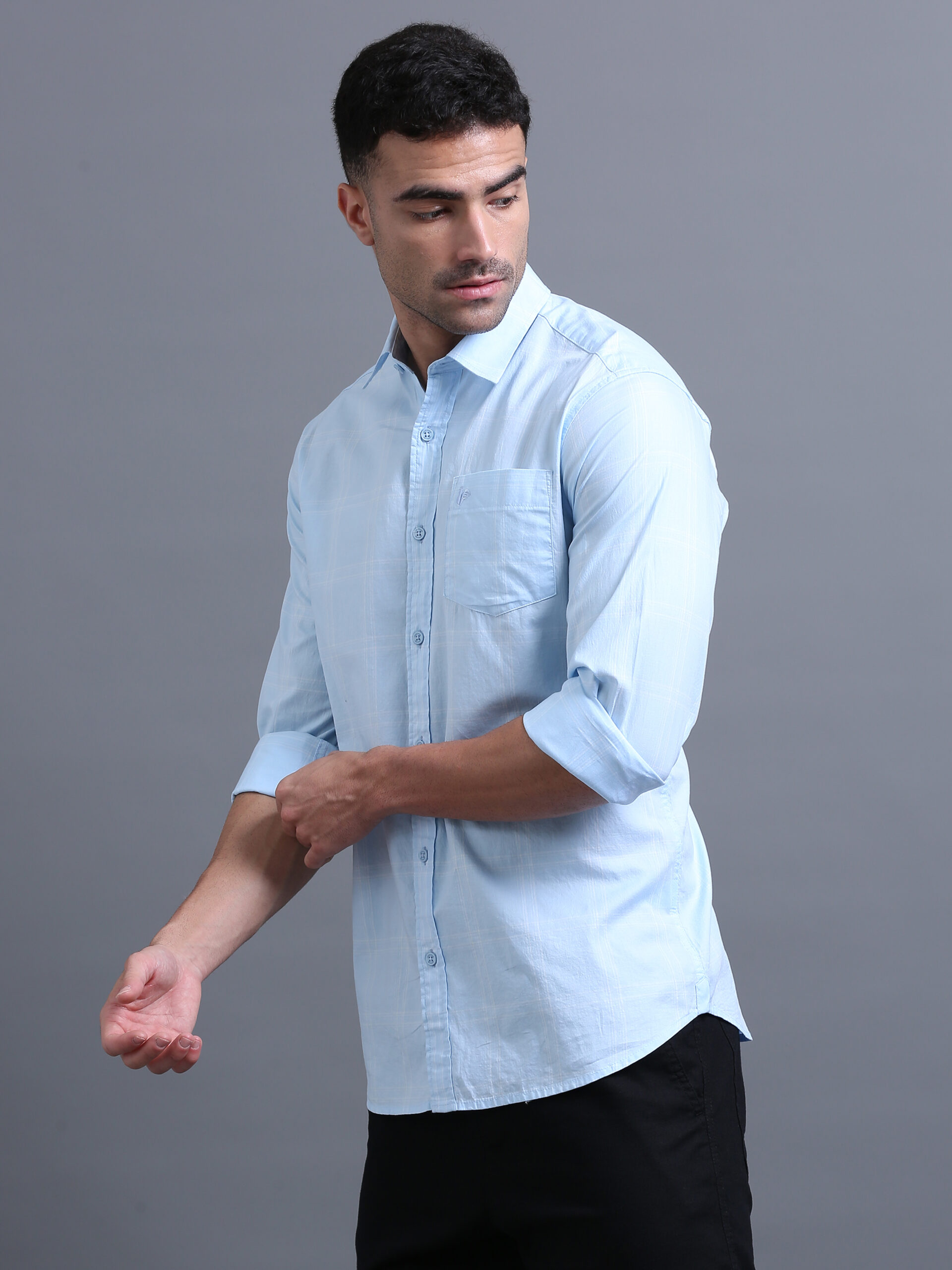 Introducing our latest tailored shirt—a refined evolution of the classic square grid, enhanced with a trio of delicate lines for striking modern geometry.