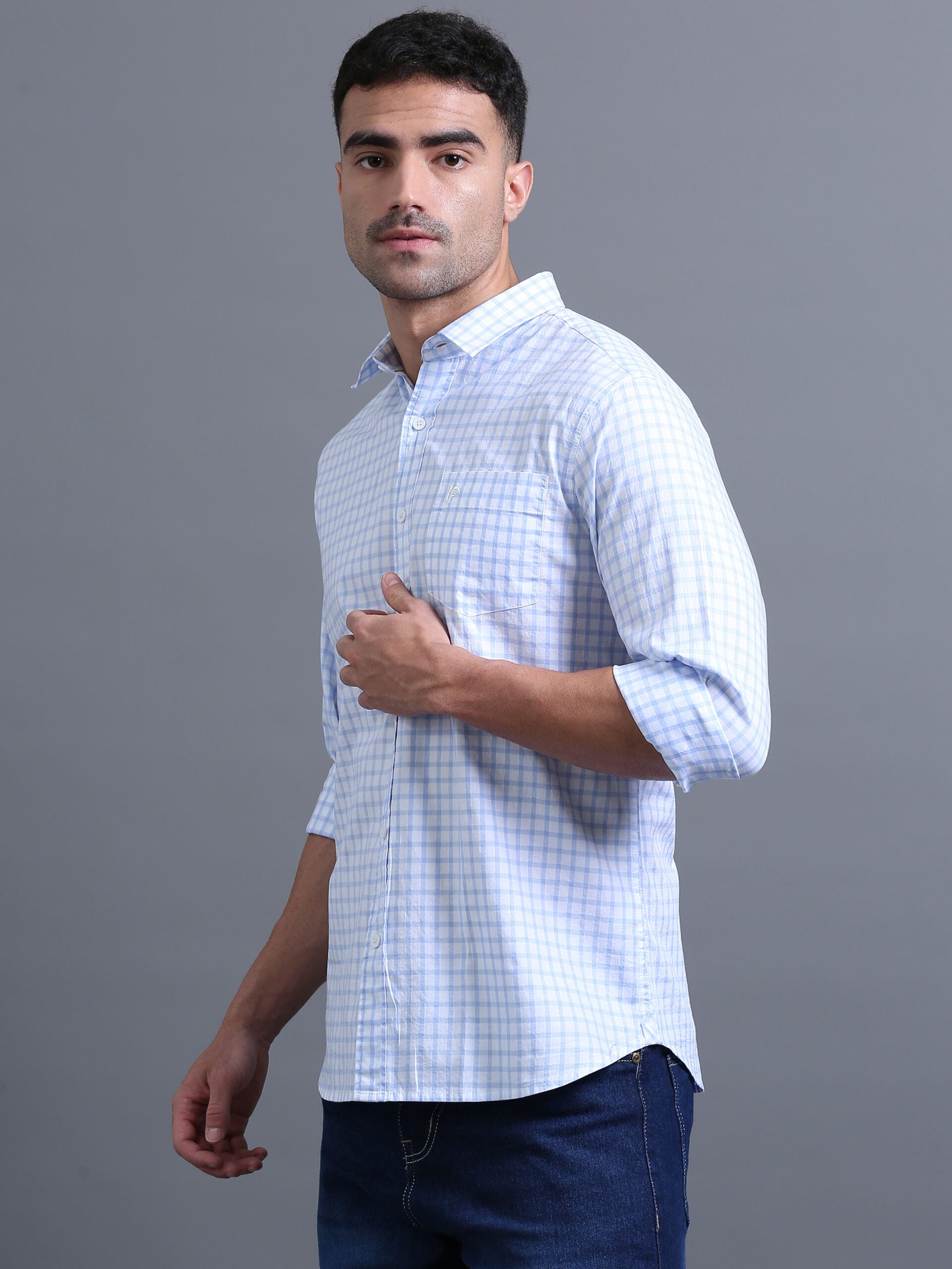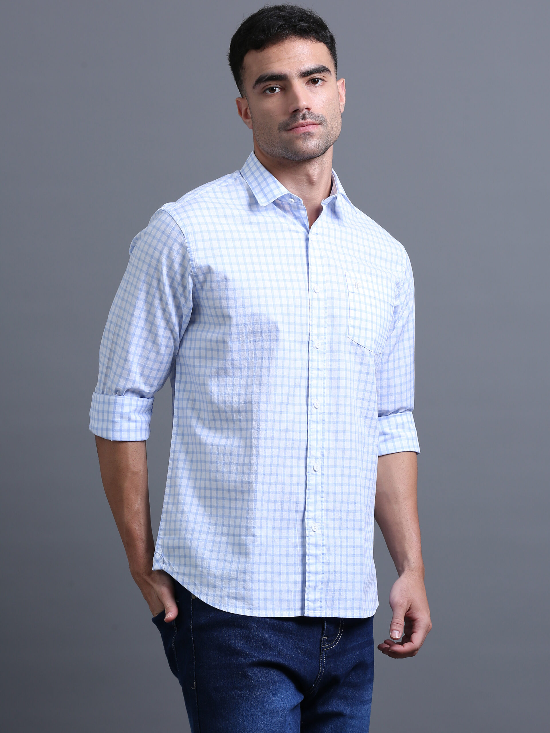 Experience refined geometry with our tailored shirt, where evenly spaced intersecting lines create perfect squares. Delicately rendered details add a modern signature of precision and style.