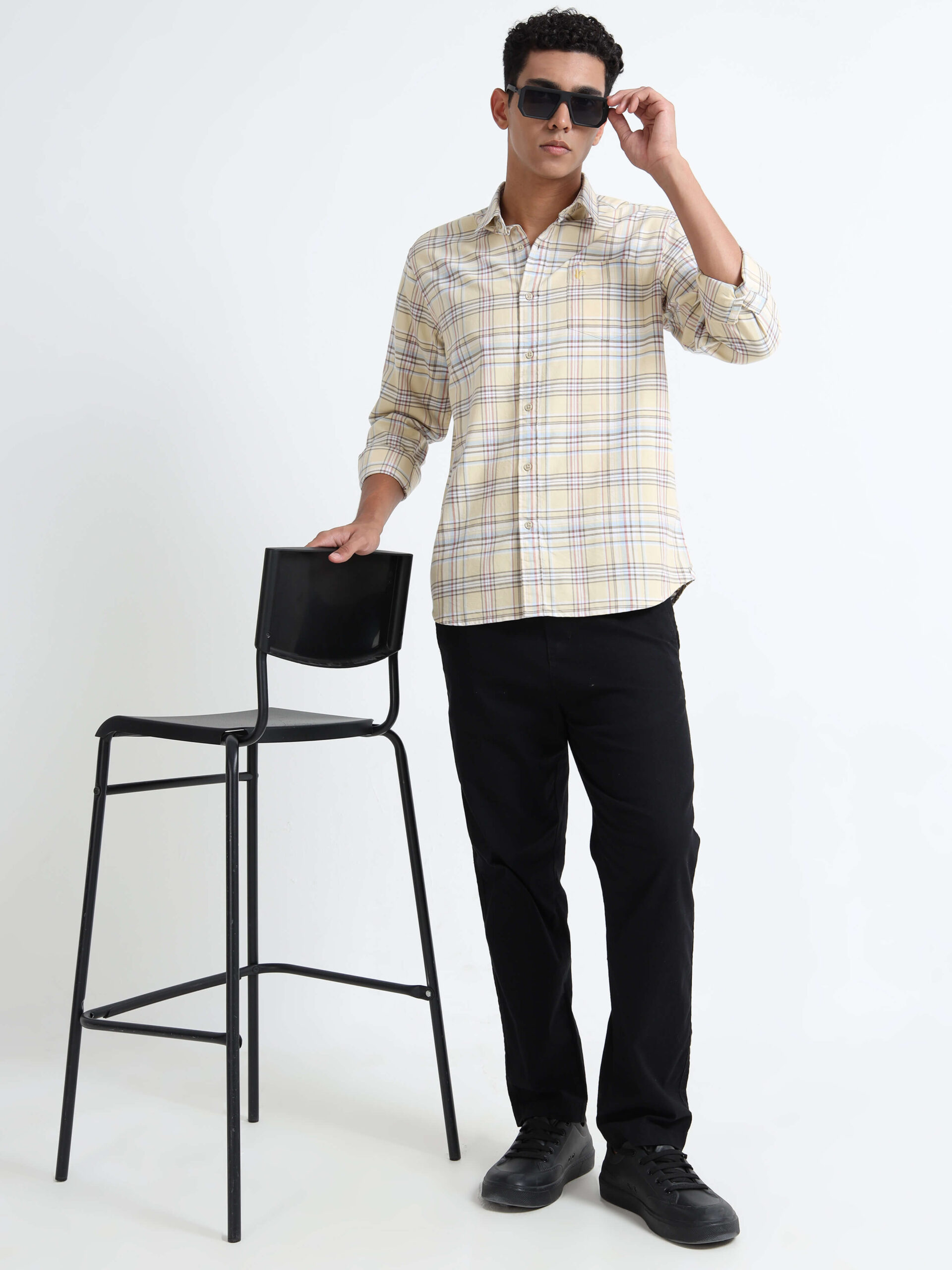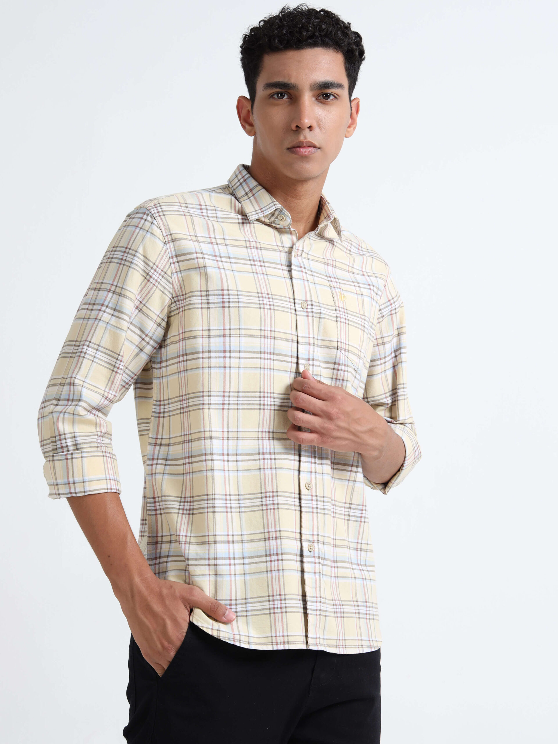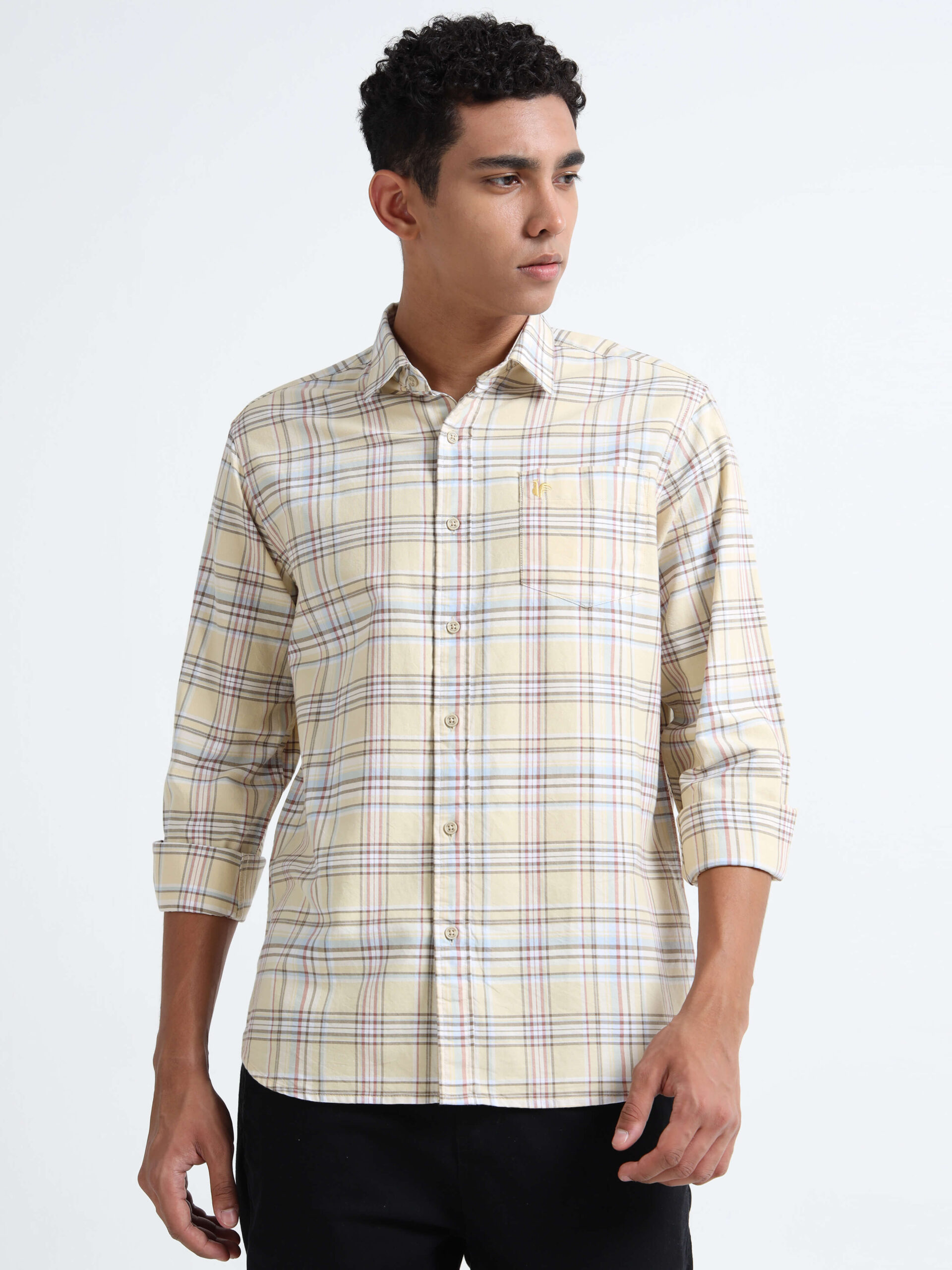 Experience modern elegance in this tailored plaid shirt, boasting an intricate grid of intersecting lines. The balanced design reinterprets classic style with a captivating contemporary twist.